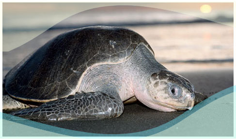 Olive Ridley is one of the smallest of sea turtles with adult reaching to 2-2.5 feet in length and weighing 40-55.5 kg. The diet of Olive Ridley includes crabs, shrimps, rock lobsters, jelly fish and tunicates. The female produce up to hundreds of eggs during nesting. The incubation of eggs takes about 40-50 days and the newly hatched larvae return back to sea after hatching. Morjim in North Goa, Galgibaga and Agonda in South Goa are the three main nesting sites of the Olive Ridley"s in Goa.